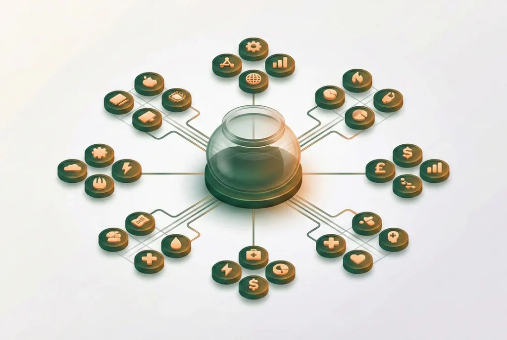 Een Exchange Traded Fund (ETF) is een mandje met aandelen dat een bepaalde index volgt. Een index? Ja, dat is een groep bedrijven rond een specifiek thema. Neem bijvoorbeeld de 25 grootste bedrijven van Nederland, of de 100 grootste technologiebedrijven in Amerika. Via een ETF koop jij een stukje van zo’n groep.
