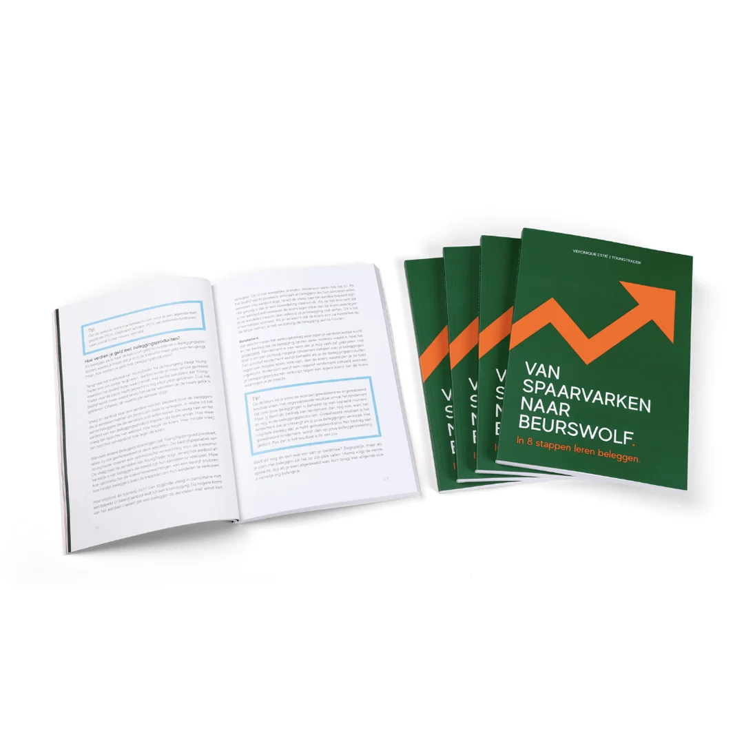 Een boek over beleggen dat zowel theorie als praktijk bevat. Na ieder hoofdstuk word je gevraagd een opdracht te maken om je kennis te testen. In Van Spaarvarken naar Beurswolf word je klaargestoomd als belegger. Last but not least bevat het boek ook nog QR-codes die leiden naar ondersteunende instructievideo’s, applicaties en websites. Een complete, praktische én persoonlijke beursgids voor ieder die wil beginnen met beleggen.